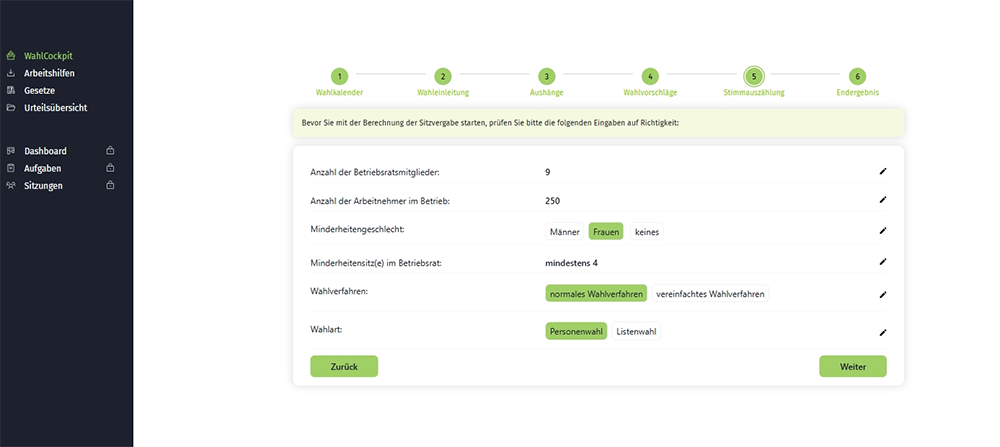 Das WahlCockpit führt Sie zuverlässig wie ein Rechtsanwalt durch alle Schritte Ihrer Wahl. Es kontrolliert und dokumentiert für Sie. Rechtssicher. Kostenlos. Und sofort einsetzbar.