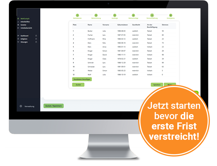 „Ich begleite Sie Schritt für Schritt durch die gesamte Wahl und stelle sicher, dass keine Fehler passieren!“ Das ist das Versprechen, das Ihnen das WahlCockpit gibt. Die Anwendung in der Praxis ist denkbar einfach: